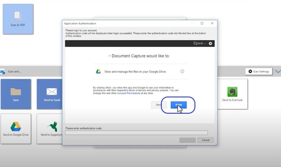 Bước 5: Sau khi nhấn Allow, các bạn sẽ nhận được mã code. Sao chép và dán xuống phần Please enter authentication code.