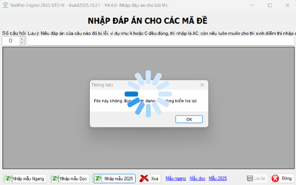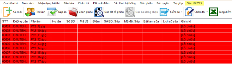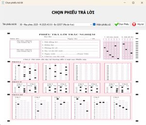 – Lỗi do chọn nhầm mẫu phiếu – dùng sai mẫu phiếu: Mỗi phần mềm chấm thi thường yêu cầu sử dụng một mẫu phiếu trắc nghiệm riêng. Nếu chọn sai mẫu phiếu hoặc sử dụng phiếu có định dạng không đúng, phần mềm sẽ không thể nhận diện chính xác.