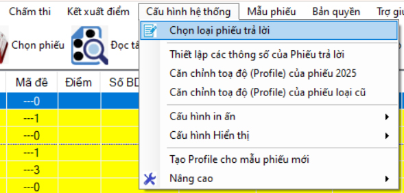 – Chọn đúng mẫu phiếu với mẫu phiếu đang thực hiện chấm