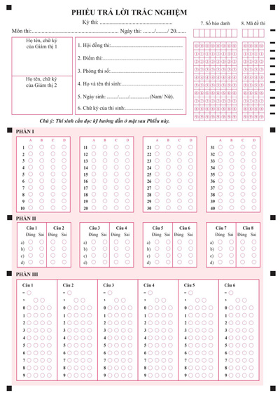 [Download] Mẫu phiếu trả lời trắc nghiệm thi THPT 2025 do Bộ GD&ĐT ban hành
