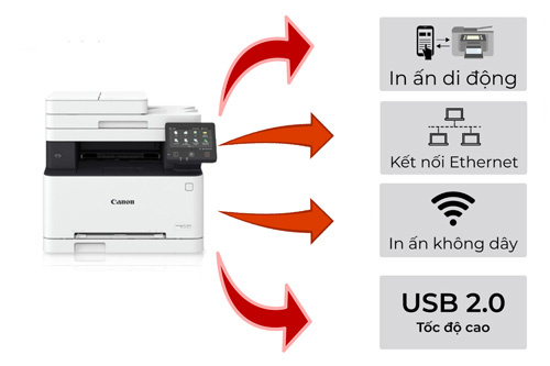 Sử dụng máy in mà không cần tới các dây cáp kết nối khi mà máy in MF643Cdw có chức năng kết nối với mạng không dây của bạn. Máy in cũng có chức năng Access Point tích hợp trong máy, cho phép kết nối thiết bị di động với máy in một cách dễ dàng mà không cần tới router mạng.