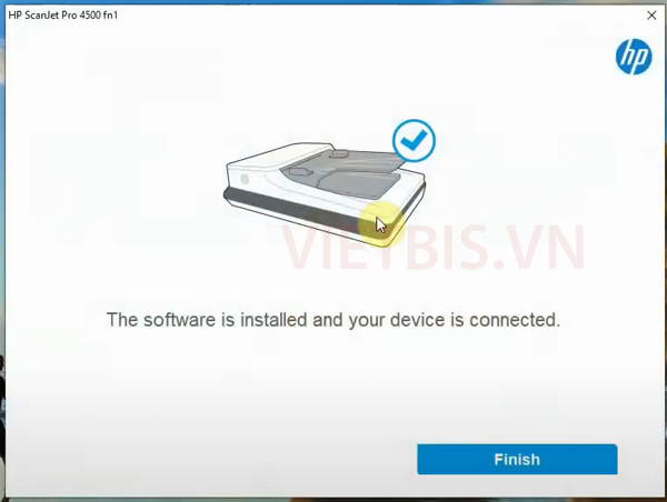 - Khi màn hình hiển thị thông báo này thì bạn có thể ấn Finish, và máy tính đã kết nối thành công với máy scan HP 4500fn1 của bạn.