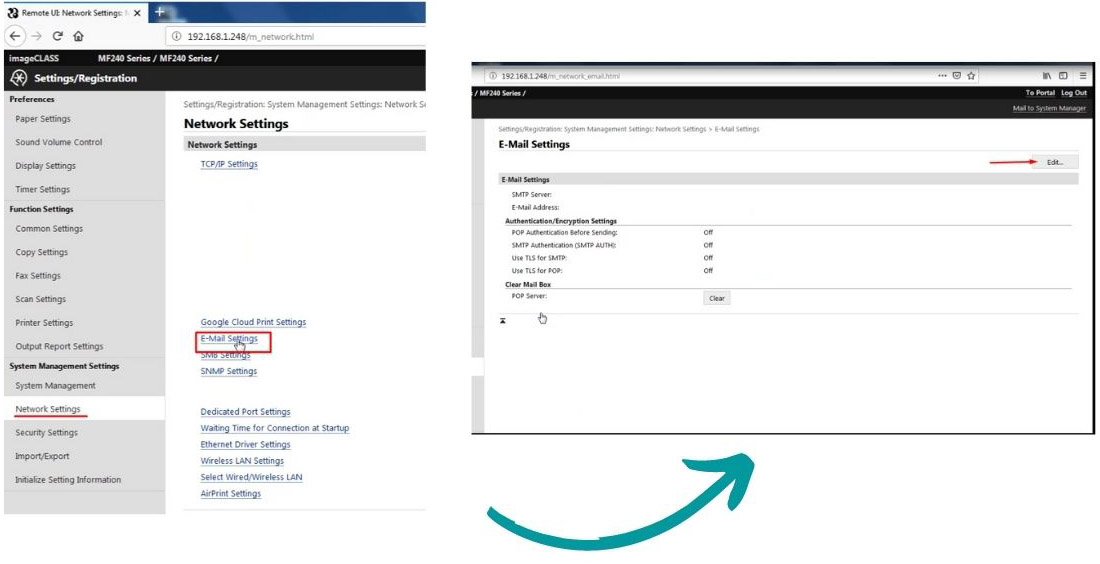 - Bước 3: Chọn Network Settings → Email Settings để cấu hình → Edit