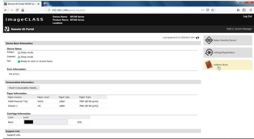 - Bước 1: Bạn cũng đăng nhập vào Remote UI bằng chế độ System Manager Mode.