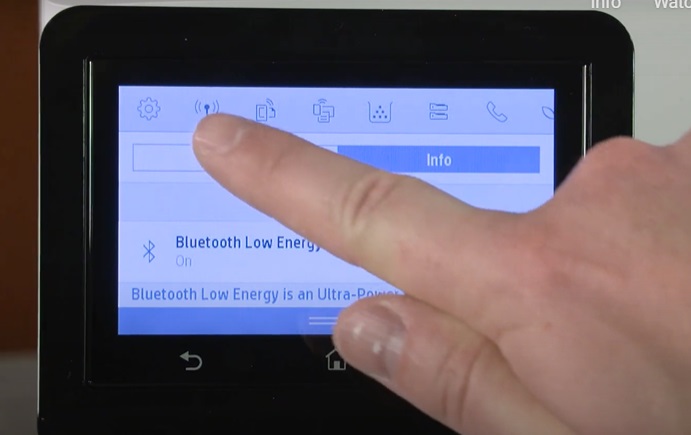 1. Từ Màn hình chính trên máy in, chạm vào biểu tượng Wireless (Không dây) hoặc biểu tượng Ethernet để xem địa chỉ IP hoặc tên máy chủ của máy in.
