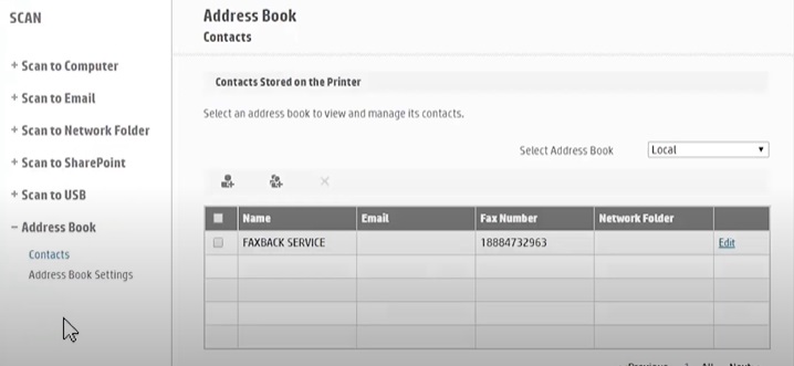- Có thể cài đặt sổ địa chỉ cục bộ trên thiết bị. Nhấp vào Contacts (Liên hệ) để cấu hình sổ địa chỉ cục bộ.