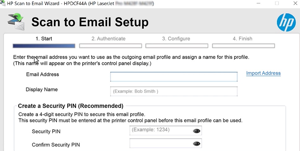 4. Trên 1. trang Start (Bắt đầu), nhập địa chỉ email của người gửi trong trường Email Address (Địa chỉ email).