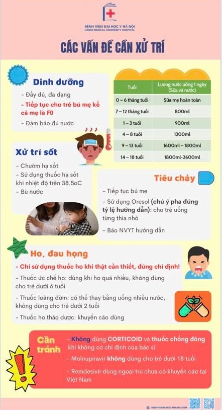 Điều đặc biệt quan trọng: Bố mẹ cần chuẩn bị sẵn 2 loại thuốc hạ sốt Efferagal và Brufen. Không được để trẻ sốt cao kéo dài. Nhiều khi trẻ sốt cao, uống 1 loại chỉ hạ được đôi chút, nhưng phải sau 4-6 giờ mới được uống tiếp. Khi đó phụ huynh có thể cho con uống loại thuốc hạ sốt thứ 2.