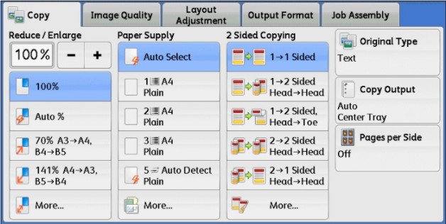 Chú ý: Khi copy tài liệu, bạn không cần chọn khay mà chỉ cần nạp bản gốc vào máy và ấn nút Start là được.