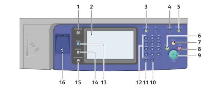9, Start: Bạn bấm nút này để bắt đầu lệnh copy, scan và fax.