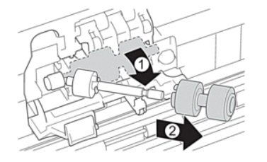 5. Nhấn vào phần mặt trên bên trái của con lăn và kéo xuống.