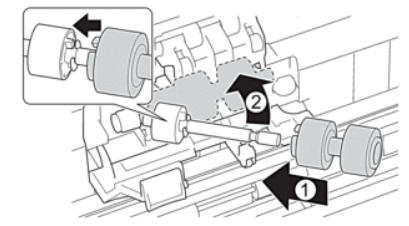 6. Giữ trục của con lăn và kéo nó về phía bạn, sau đó tháo ra và kéo sang phải.