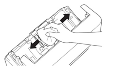 9. Làm sạch con lăn cuốn giấy bằng vải mềm ẩm từ bên trái qua phải.