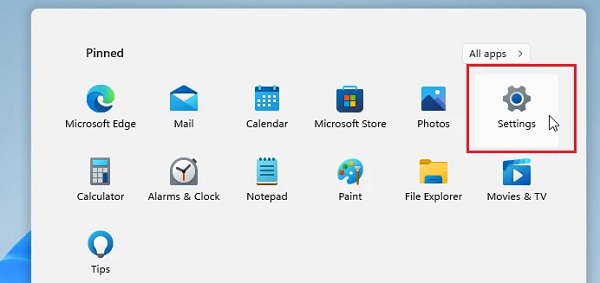 Bước 1. Truy cập menu Start ➟ Click vào Settings.