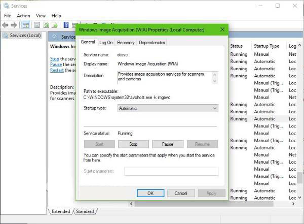 - Tìm Windows Image Acquisition (WIA) Service, kích chuột phải, sau đó chọn Properties.