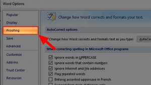 - Tiếp theo, nhấp vào cửa sổ “Word Options” lựa chọn “Proofing”.