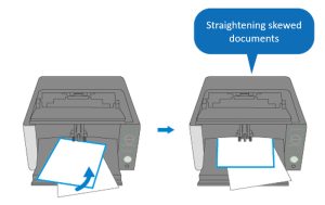 - Hiệu chỉnh nghiêng tự động sử dụng các con lăn sang phải và trái di chuyển độc lập để làm thẳng tài liệu trước khi quét, ngay cả những tài liệu bị lệch đáng kể.