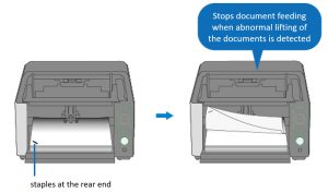- Chức năng này cũng cải thiện chất lượng đầu ra của các tài liệu bị gấp hoặc bị cong. Ngăn chặn tài liệu trước đó bị đẩy ra khỏi ngăn xếp hoặc kẹt giấy ở khay giấy. Máy quét giúp người vận hành dễ dàng thu thập các tài liệu được quét để họ có thể tập trung vào nhiệm vụ quét của mình mà không gặp bất kỳ rắc rối hay phiền phức nào. Ngay cả khi xử lý các tài liệu có kích thước khác nhau.
