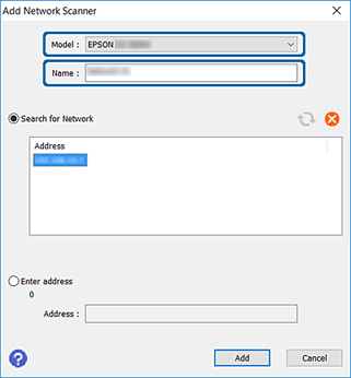 Quan trọng: Bạn không thể tìm kiếm máy in trong phân đoạn mạng khác qua bộ định tuyến. Chọn Nhập địa chỉ để nhập trực tiếp địa chỉ IP.
