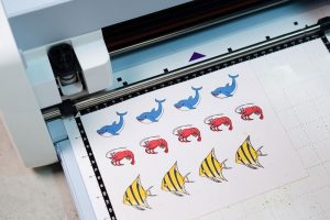 - Với tính năng cắt: Có thể chọn cắt bế một nửa (half cut) hoặc cắt trực tiếp (cắt đứt hết vật liệu). Cắt bế thường được dùng để cắt những tấm giấy decal, lấy sticker ra dán liền. Bạn chỉ việc chọn 1 tấm decal đã có hình vẽ, để vào máy cho nó Scan, nhận diện nét vẽ, sau đó cài đặt cắt có viền hay không viền, cắt vòng tròn hay là ôm theo nét vẽ,…. Sau đó chọn Start đợi máy tự cắt là xong.