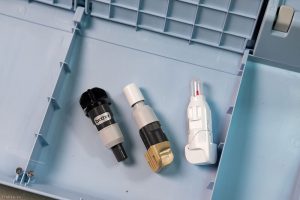 - Hộp để xẻng (để lấy giấy ra khỏi tấm lót cắt) và bút cảm ứng, không sợ để lạc.