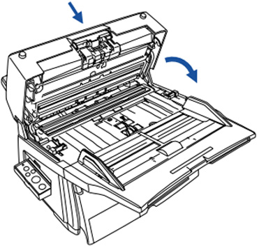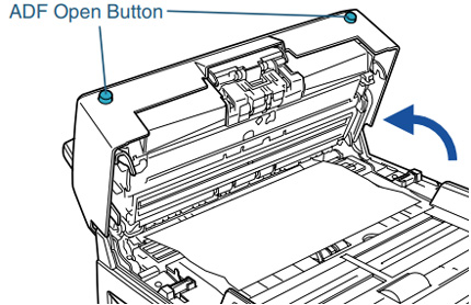 2. Đẩy các Nút mở ADF, nhấc mở ADF.