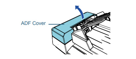 3, Nhấn Tab màu xanh để mở khay ADF trong máy scan Fujitsu SP – 1125.