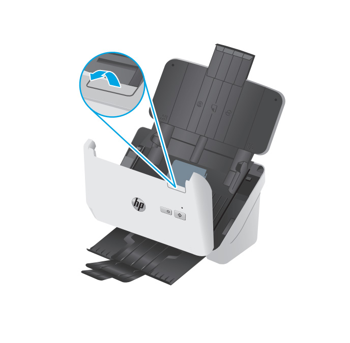 1, Kéo chốt về phía trước để mở nắp khay nạp tài liệu máy scan HP 2000s1