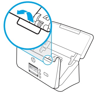 3. Loại bỏ mọi mảnh vụn có thể nhìn thấy (giấy, kim bấm hoặc kẹp) khỏi đường dẫn giấy.