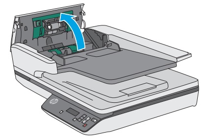 4. Kiểm tra các con lăn trong khay nạp tài liệu và loại bỏ mọi vật cản có thể nhìn thấy.